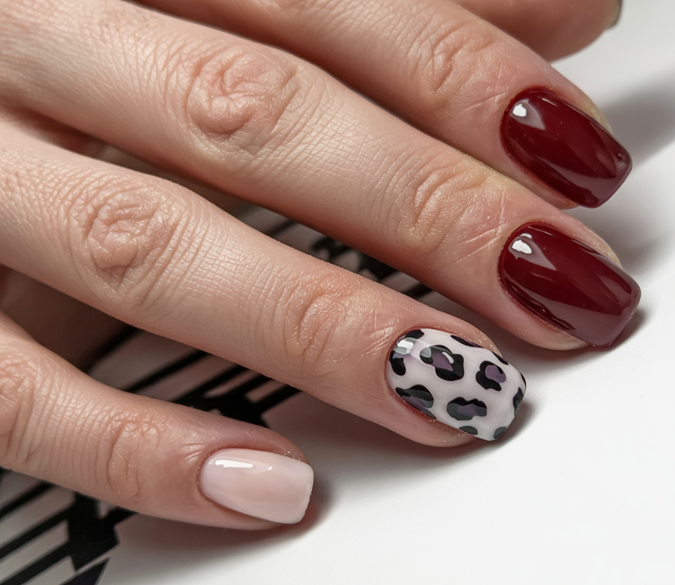 This is romantic, moody, strong, burgundy and cheetah combination just all fall magic. The deep red is beautiful in its own way and enhanced by the cheetah (or lanyard) accent, which is an equivalent of taking a cup of mulled wine and discussing where you will go next. These fall cheetah nails 2025 are leisurely wild and miraculous polished.