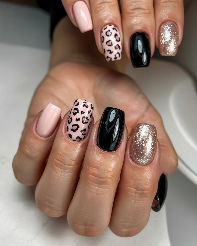 Who says you can’t sparkle and roar? These fall cheetah nails 2025 show that flashy and tough can definitely exist on the same hand. Through black, glitter, and pink details that frame the playful cheetah pattern, this set is bound to be set up in a festive period of the year or a date night or simply a stay home pick me up.