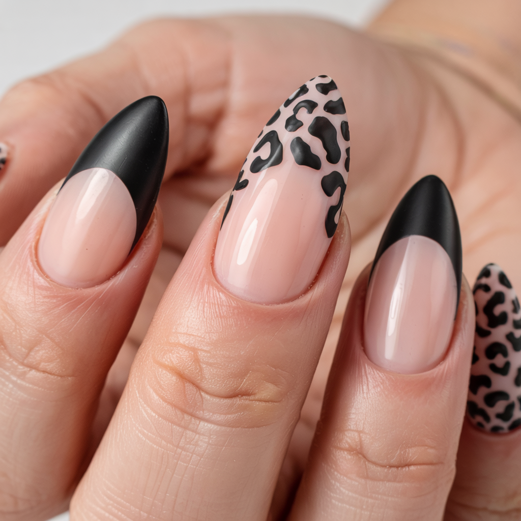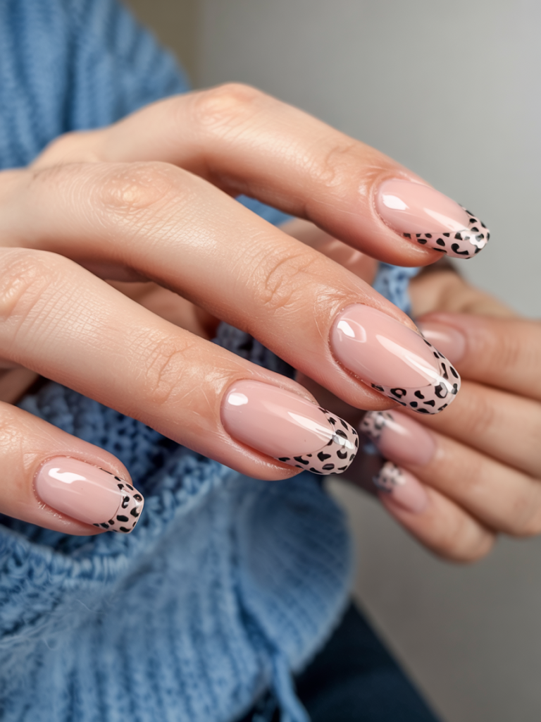 Theatrical and chic, this mani is something of a little black dress in fall nails by way of classics with an edge. French tips that are done in bold matte black merge into wild cheetah patterns that make the overall look sophisticated, but wild. These fall cheetah nails 2025 are all sizes of attitude bottled up in a polish.