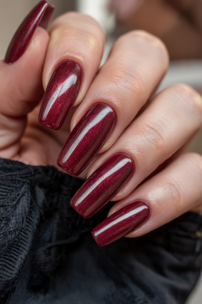 It looks fabulous on long almond nails and looks awesome when done on gel or acrylic nails. This tone flatters both fair and brown skin, making it a top pick if you’re leaning into sultry seasonal glam this year.