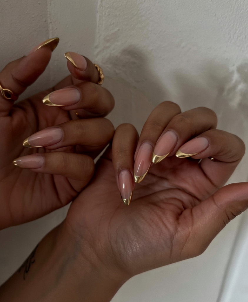 This cocoa brown tone with a chrome finish has major “fall fashion week in Paris” energy. Shiny and assuring, it is the manicure to keep any garment, be it a blazer or a trench coat, instantly classier. Long almond shape is just a perfect additional touch of sophistication.