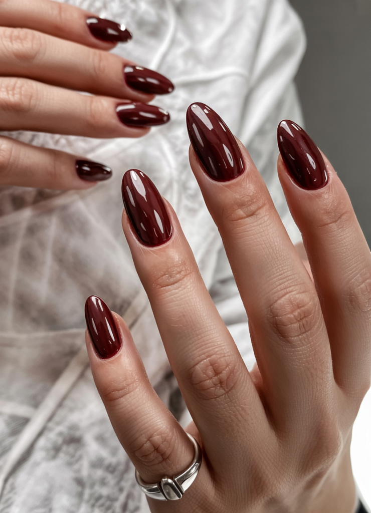 It is an almond-shaped nails manicure, which is absolutely beautiful and can easily be carried on as you go into your holidays. It is compatible with gel or DND polishes and warm wardrobes as well as jewel tones are ideal. It is low maintenance, yet high impact, and it happens to be a favorite of those who want a bold color but do not want to retouch it each week.
