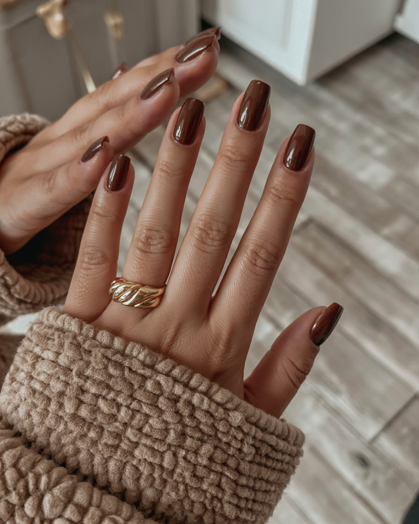 This is super flattering on every skin tone and best done with short nails, it is also low-maintenance. The dressy look is not noisy. If you’re craving fall nail ideas that feel natural but polished, this is your quiet luxury moment.