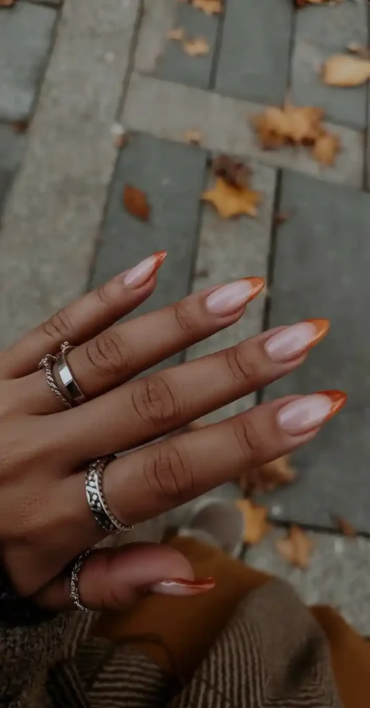 This shape is more optimal with short-to-middle nails and looks amazingly good with silver or gold jewelry. It’s a go-to if you’re aiming for a classy, elevated look that doesn’t scream seasonal but still fits the fall vibe.