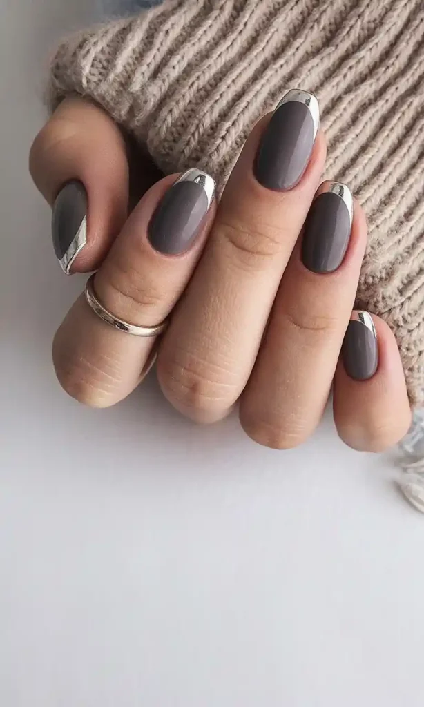 With a more chill interpretation of the fall french tip, this moody, gray polish makes you feel like a rainy-day latte. What sets it apart? This beautiful shiny silver metallic tip to provide the shine of the future on this look. It is comfortably fashionable and it has the good daring that is required during sweater weather accompanied by a dose of sass.