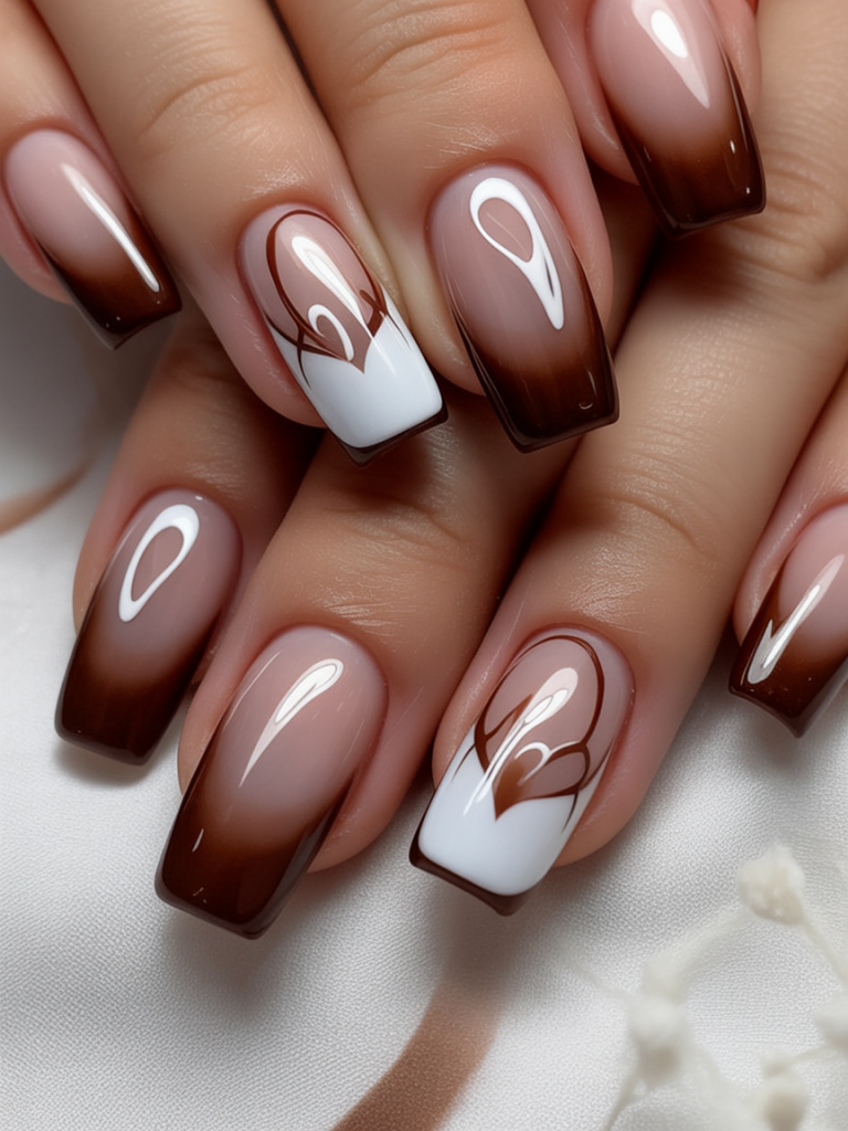 This sweet brown ombre fades into nude in a very clean way topped off with fluffy white and cocoa swirls that are a work of art in a latte. It is warm, warm and oh-so-inviting, like swaddling into a warm blanket and opening a good book.