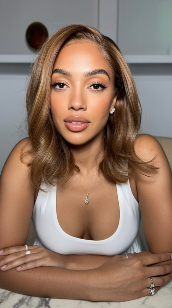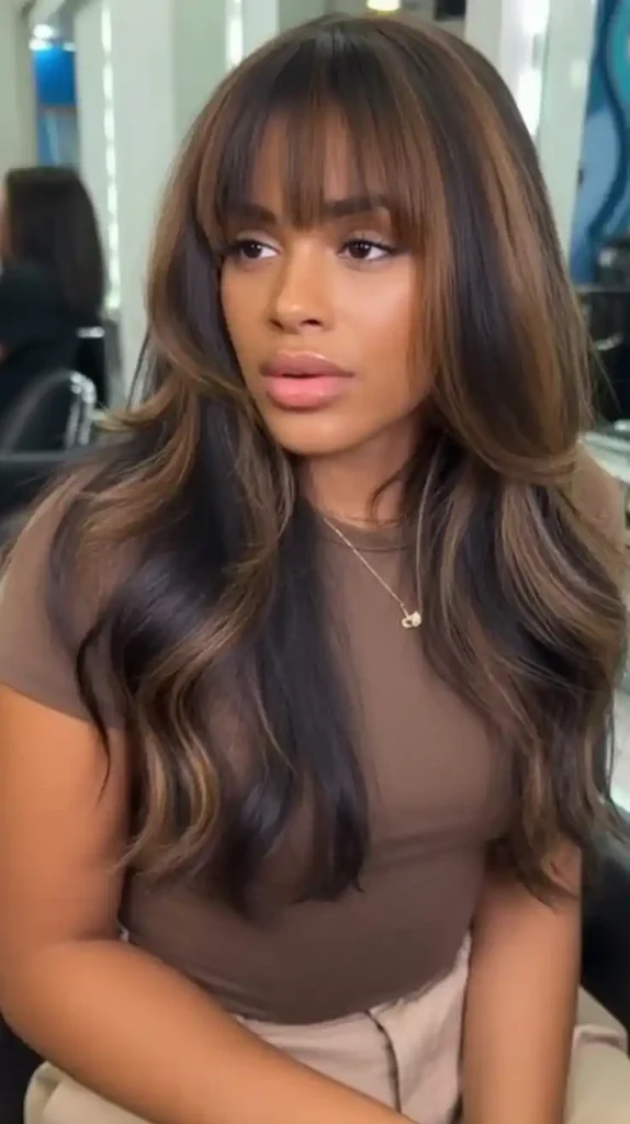 It is an excellent style on black women or anyone that has medium to dark natural hair and seeks low level contrast brightness. The feathered fringe is great to add movement to straight to wavy hair and the color can add the volume. It is a beautiful makeover of brunette 2025 short hair or even long styles- it can be maintained with the help of gloss treatments regularly after every few weeks.