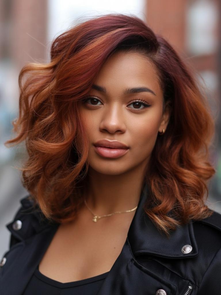 This cut is ideal to black women and the ones having the craving of the three-dimensional kind of warmth, it suits best the oval and the heart-shaped face. It is particularly popular in the trends 2025 red family, which makes your style deep, but not fully light. To style, round brush is used to maintain the volume and softness and gloss sprays are applied to make the color stand out.