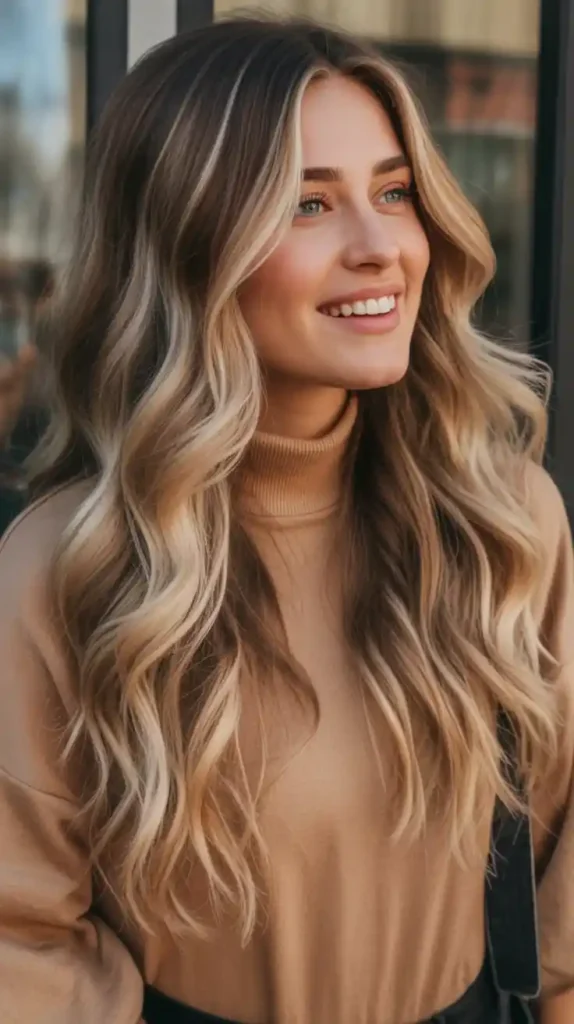 These falling pile of curls (waves) ideally harmonize shades of cold and quite warm. The brown foundation provides the appearance with an attractive fall base, whereas the gentle blonde highlights add depth and richness. It’s the kind of color that looks polished and put-together but still breezy and natural — like you woke up with perfect light play in your hair.