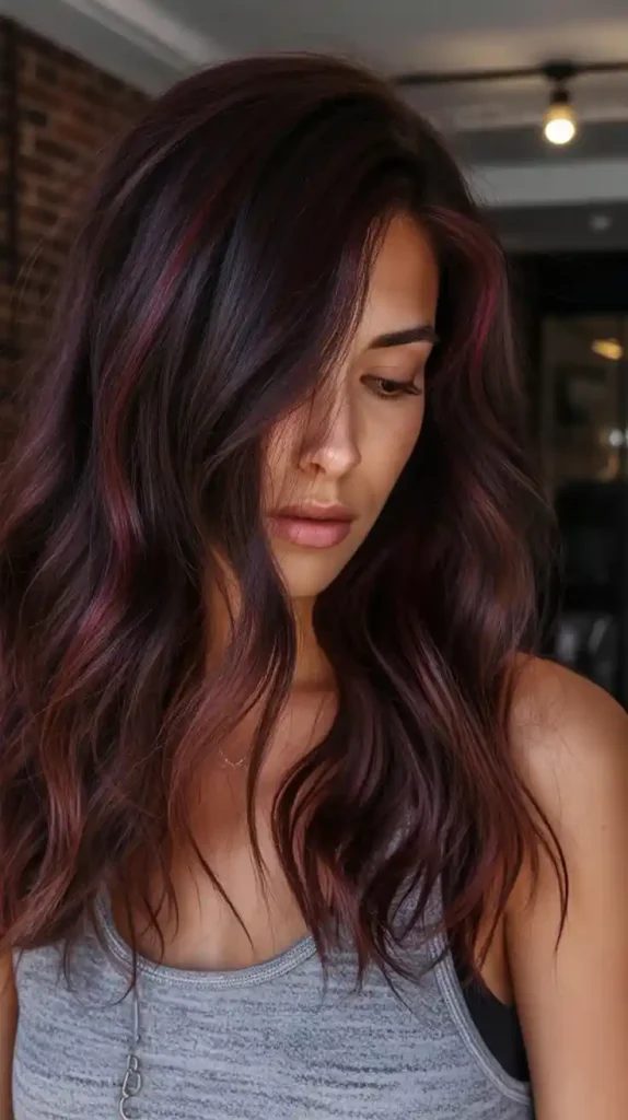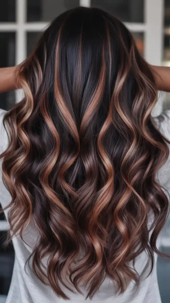 It is perfect on brunettes who wish to experiment with something brighter this season, but it is flattering mostly on long, thick hair with much body. It is the best trendy ideas 2025 color among the women who are fond of bolder yet sophisticated style. Finish with a bendable hairspray, and use a wide-staved curling iron with a lot of bounce.