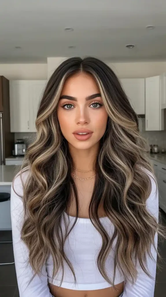 The style is good with long and layered cuts and with thick or medium-density hair of the woman. One of the most daring trends hairstyles 2025 brunette is the combination of tones; it is also recommended to wear the color with soft rather than straight waves to make the color contrast more significant. Request balayage service to ensure a smooth grow-out, and ensure the blonde is not too dull with toning.