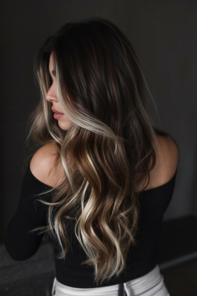 6. Cool Blonde Highlights on Deep Brunette Layers