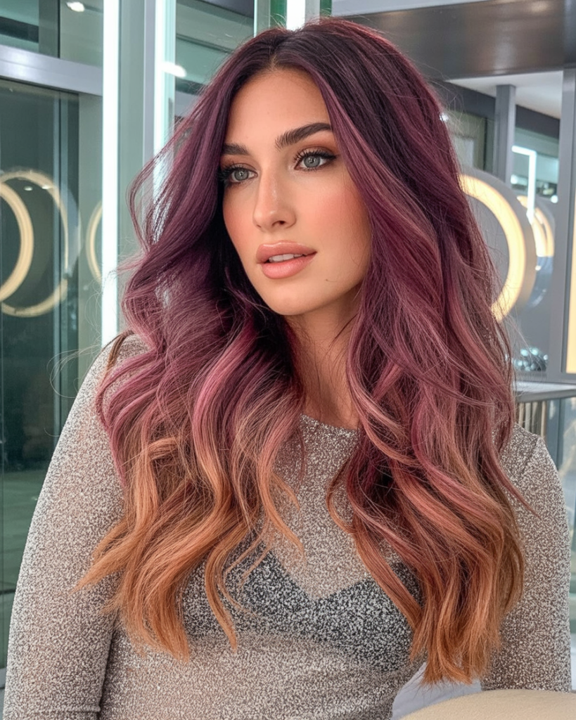 7. Plum-to-Peach Ombre for Bold Fall Vibes