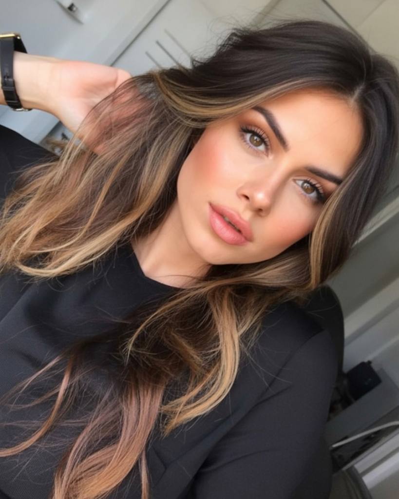 The style best fits a girl who would like a few highlights and remains faithful to the brunette spirit. It suits particularly well on oval or heart-shaped faces and the warm tones looks stunning with green eyes. A lightweight glossing serum will assist to make sure that the highlights are bright and crisp.