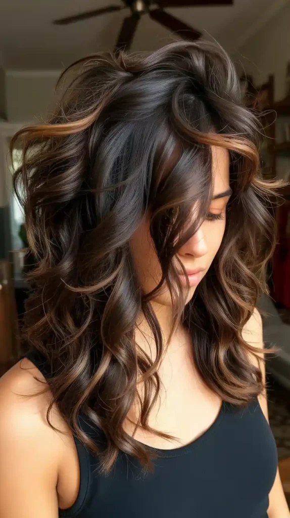 This style looks best with short hair or with what we would call the 2025 medium length and it really lives on layers and movement. It’s low on effort but high on attitude. Fluff your hair even more with a texturizing spray or a dry shampoo to make them caramel highlights shine.