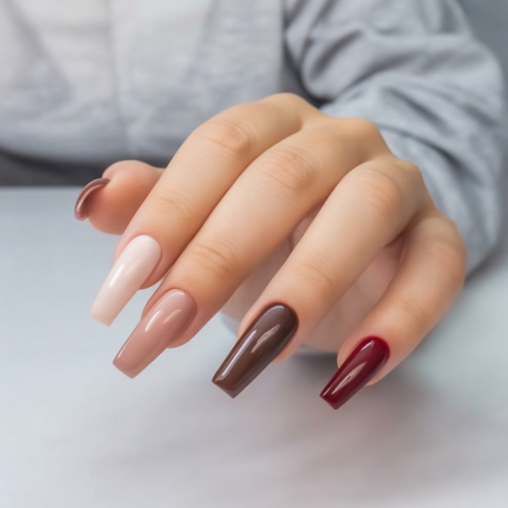 Consider having velvet latte-like texture that is what this manicure is like. The matte texture in deep cocoa balances out the piece and is earthy, whereas the creamy, marbled accents give the texture a facet and direction. The design is both relaxed and innovative, having a soft earthy mindset, which is anticipated to be a trend in the year 2025.