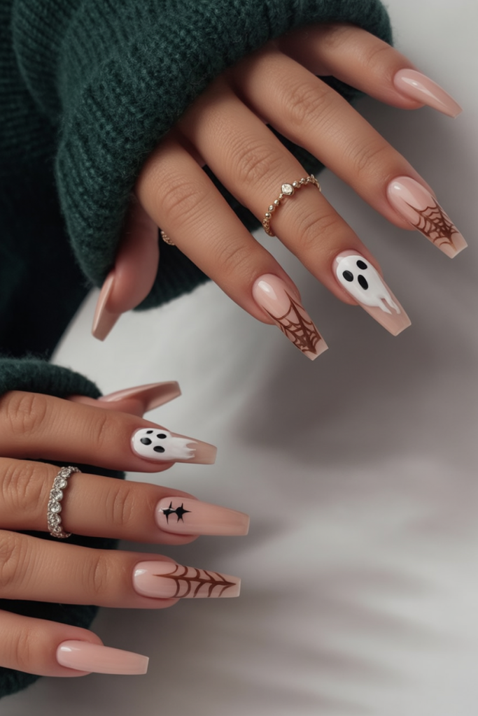 It is adorable, even in understatement! This set has made Halloween fun fall into chic on the season. The designs are light and easy, with neutral-colored bases and cute hand-painted ghosts, spider webs and spark appliques. It’s festive, charming, and absolutely conversation-starting.
