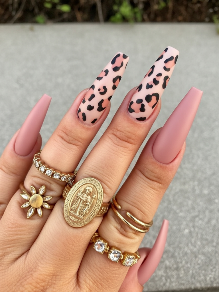 Rawr, but make it fall! The gray length of nails is matte mauve and is a neutral base of that fierce leopard moment. It is warm and hardcore at the same time, like drinking spiced cider with a faux-fur coat on. The hot and soft with wild is perfect, as far as the season is concerned.