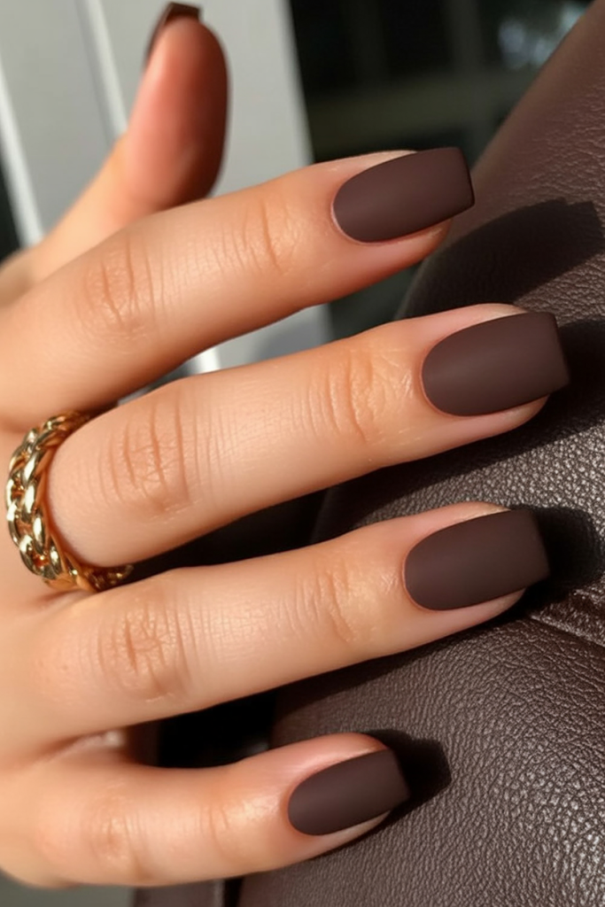 The deep matte cocoa appearance brings minimalism together with fall chic. It is the sort of manicure that says subtle sophistication without screaming it out and as such it is ideal for any woman who adores the traditional elegance with only a touch of the season on her fingertips.