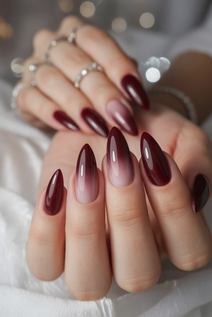 There’s something instantly luxurious about a deep wine-to-blush gradient. This almond profile is nothing but mystic and seductive, such as putting on your favorite cashmere wrap and getting ready to go on a spontaneous date night. The shift in the color is romantic and strongsimmering but in good way of the old fall dream.