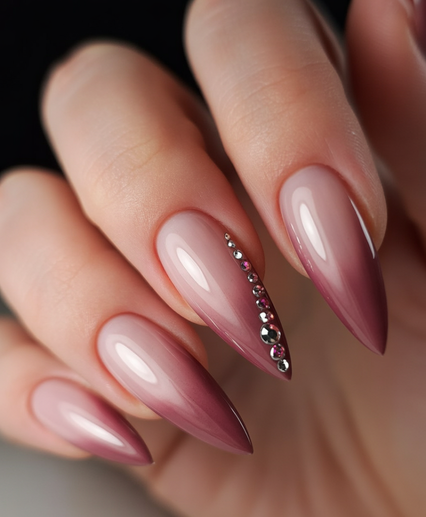 And when you desire a hint of glamour but want nothing extra lavish than that of elegance, then this berry-style ombr stained with delicate rhinestone embellishments will work perfectly. It is a touch of spangle, and more a whispered one–as though the fall twilight were coming in the window.