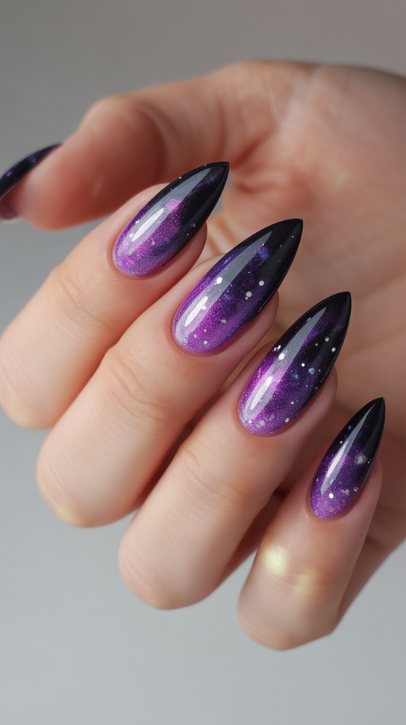 This is one of the most daring looks autumn colors can suggest and this nail should be longer almond or stiletto ones. The galactical cosmic specks put a celebrative spin into the fall ombr tips nails 2025 fad to peak during Halloween time or a fantasy night out.