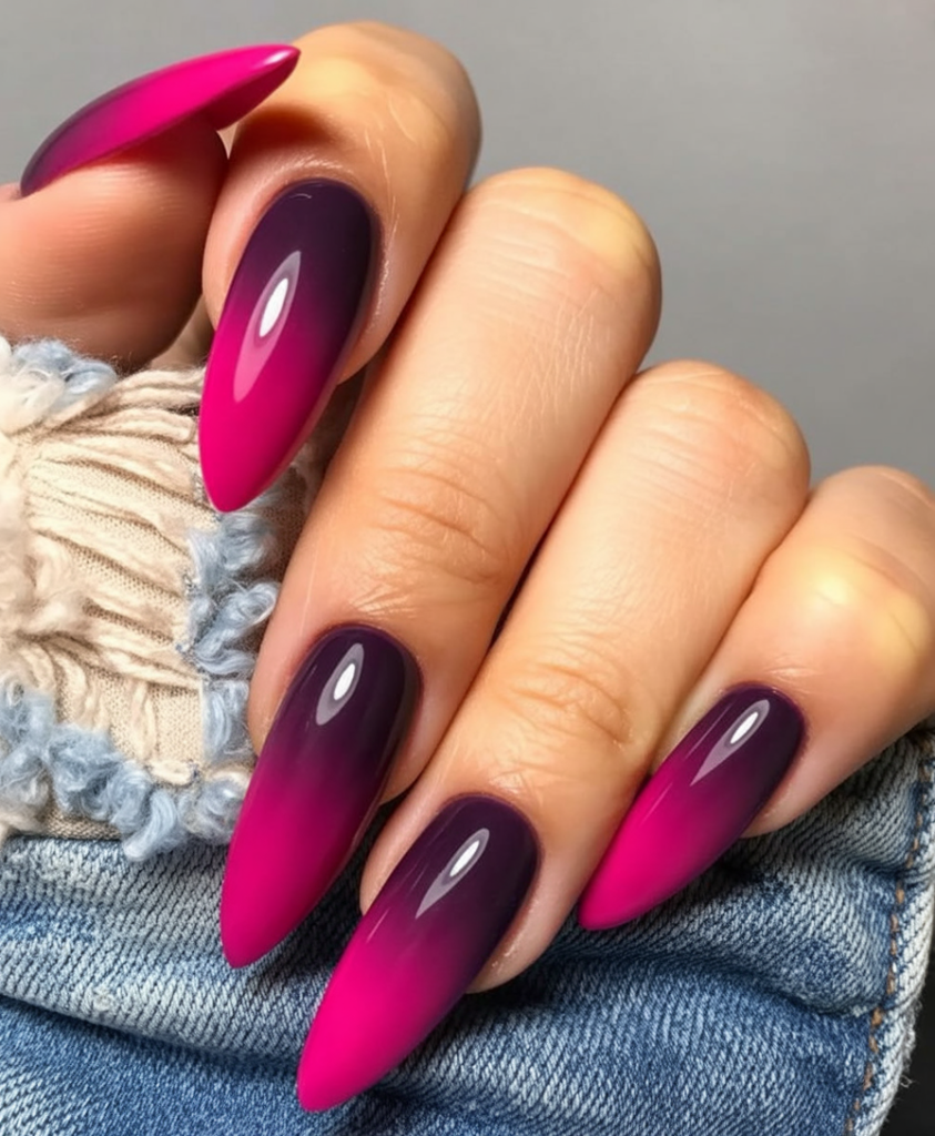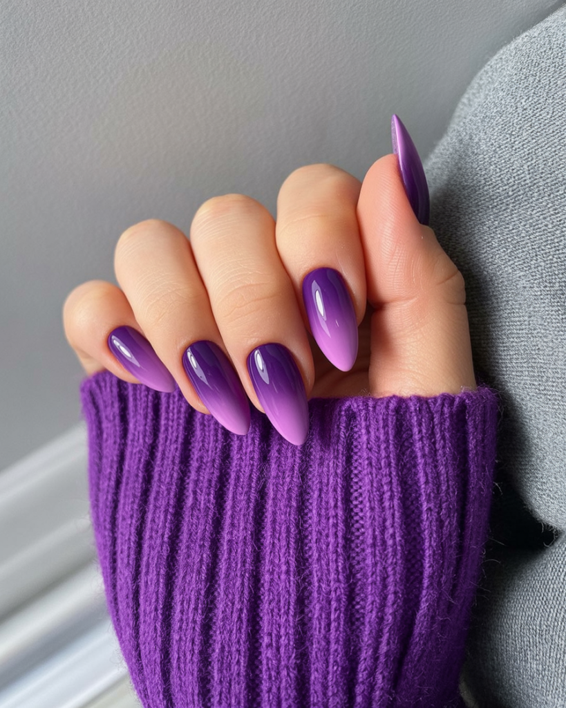 Deep purple is the power of bringing out your inner goddess, because it is moody, luxe and firmly bold. This ombr effect dances between violet and plum shooting with glassy make-up and ultimate drama. It is the nail polish version of grabbing a velvet blazer when you know it is going to be cold in October.