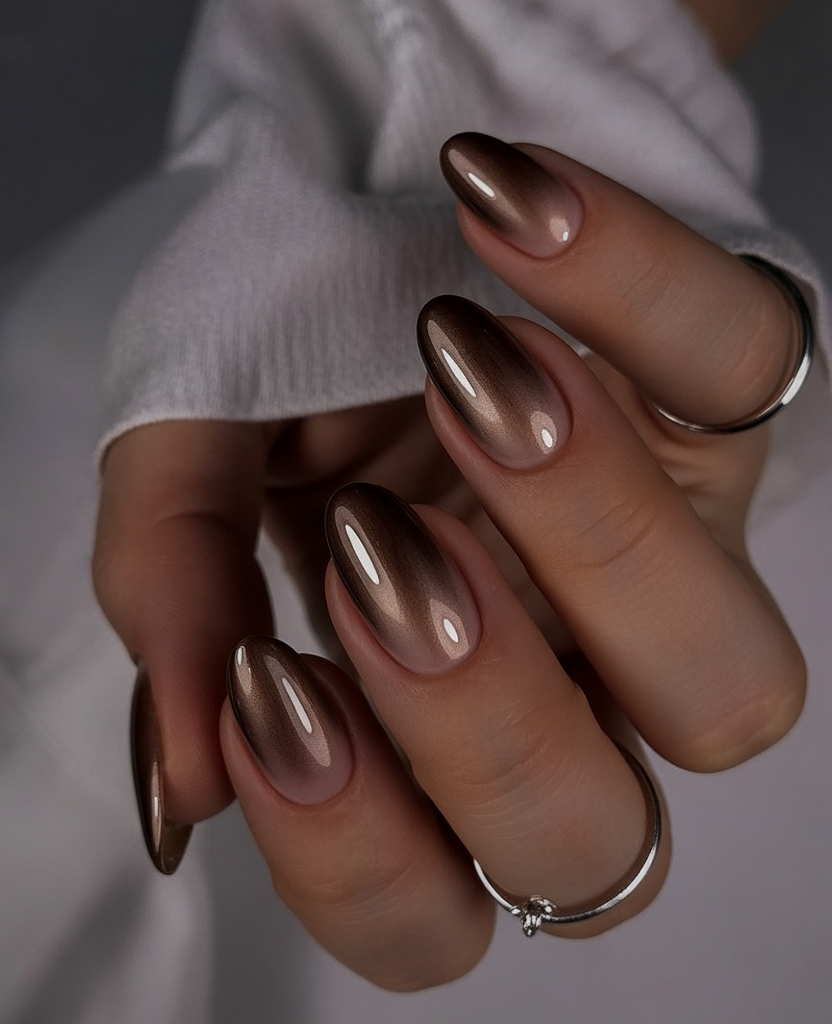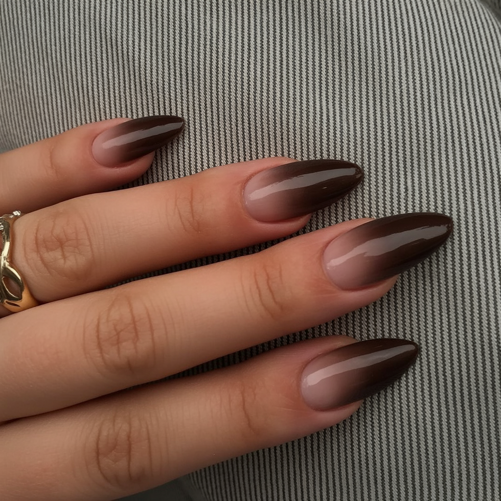 The ideal almond shape to be worn by a lover of almond shapes looking at versatility without dulling the effect. They are the perfect color, in case you are going in with earthly tones and creamy textures this season. It is one of the fall ombr les nails 2025 to be worn and fun.