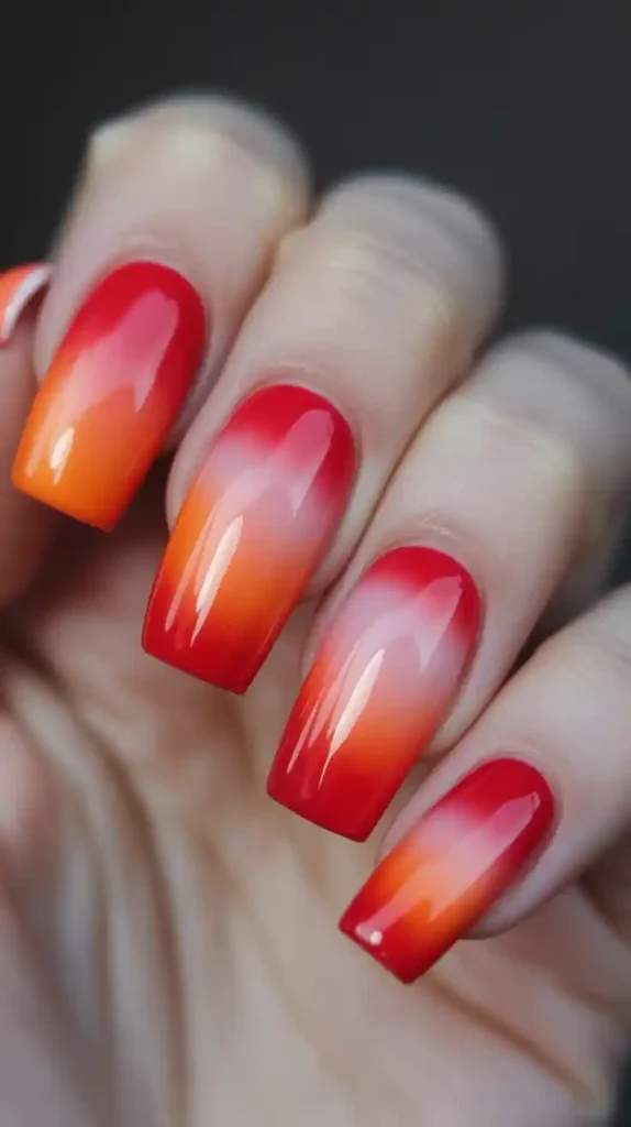 A top pick if you’re seeking ideas autumn that pop, this design works beautifully on medium-to-long square nails. It’s ideal for women who love statement nails and aren’t afraid of color. Indeed, one of the most daring fall ombr e nails 2025 designs to wear right now.