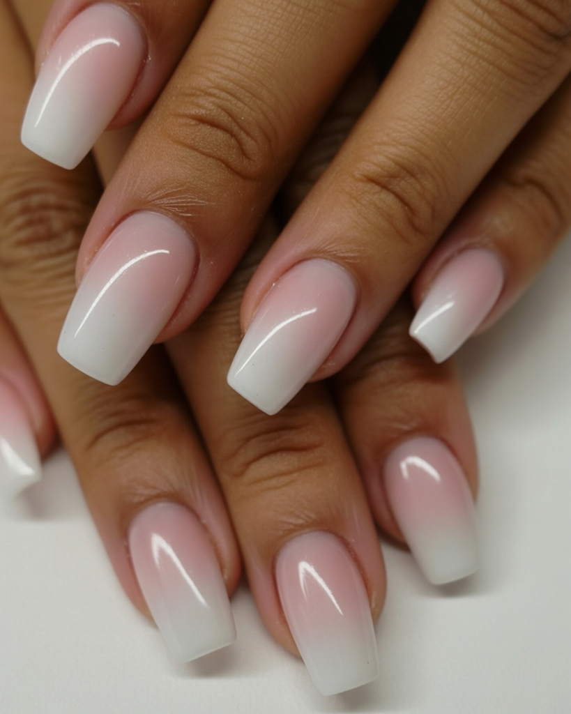 It has a dreamy, almost bridal, the quality of this sheer pink-and-white meld. It is one of those designs that say nothing, it is plain, traditional, and yet still contemporary. That is the appearance when you need your nails to coordinate with everything yet not being lost in the background.