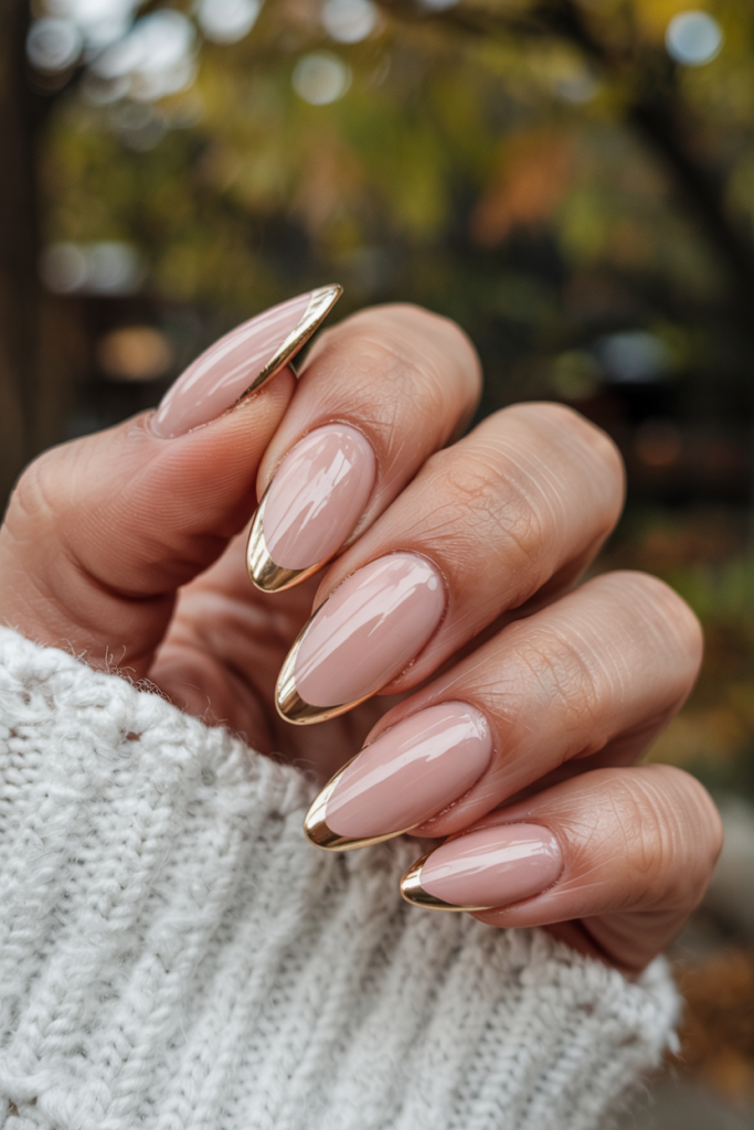 These nude almond nails with a very fragile gold tip are so glamorously regal, like wearing satin gloves as you walk down the isle. This style borders between elegance and subtle confidence, which is great among the women who need to feel classy without appearing ostentatious. It ushers frills with each wrist movement and is absolutely stunning in any fall event.
