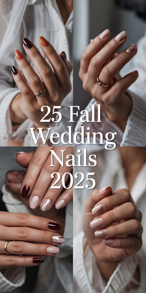 Fall weddings are magic with golden leaves, candle light, and other romantic touches that take your heart out of rhythm. And when we are talking about feeling head to toe (literally) gorgeous, then your nails could use a share of the limelight as well. Whether you’re the bride, a bridesmaid, or the proud mother of the bride, there’s a perfect fall manicure waiting to complement your look and capture the season’s beauty. From warm neutrals to sparkling golds, I’ve rounded up 25 stunning fall wedding nails that are equal parts elegant and unforgettable. So go ahead, have a cup of java, put up your legs and we will match you up.