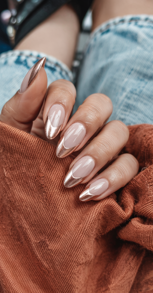13. Rose Chrome Tips for Bridesmaid Elegance
