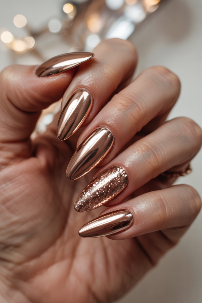 16. Rose Gold Chrome for a Show-Stopping Bride