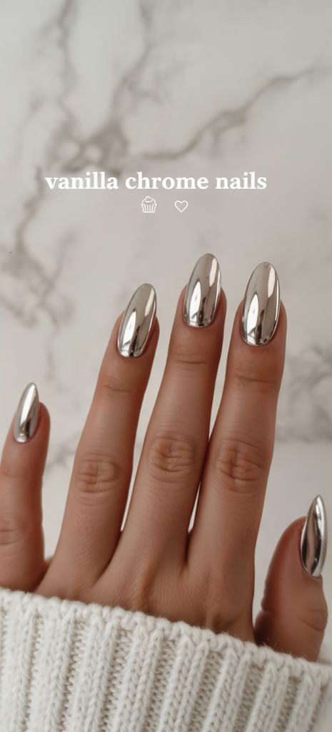 Shiny, edgy and futuristic at its finest, vanilla chrome nails look like drops of pearls on your nails. They are light reflectors and make any bridal style have some high-fashion flavor. These are some magic nails exactly which are relevant to a modern fall wedding.