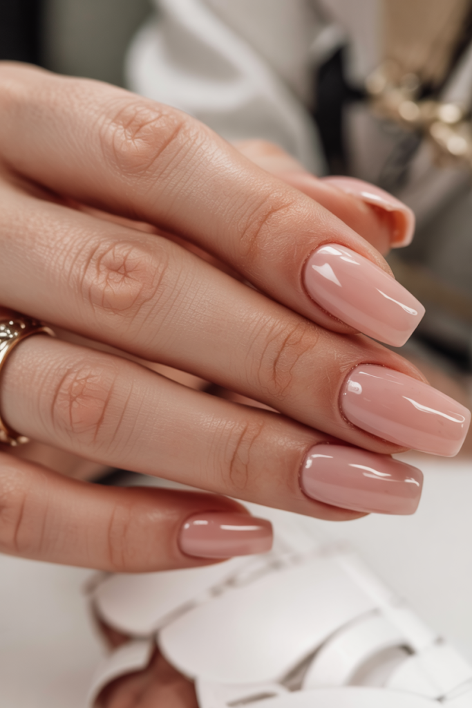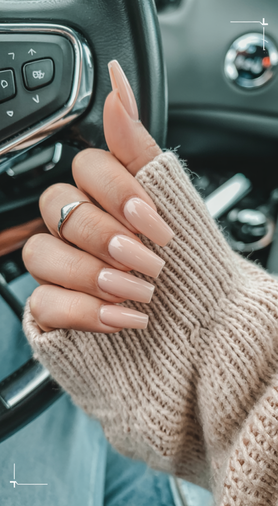 9. Nude Coffin Glossy Nails to Modern Bride