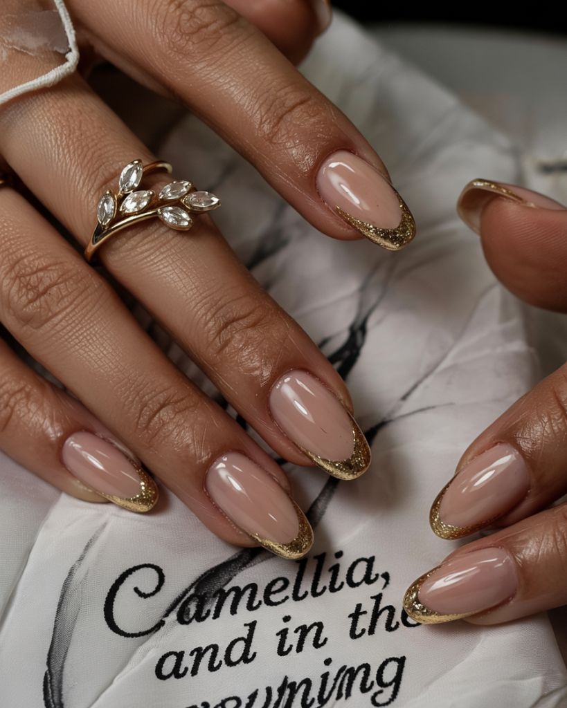 6. Gilded French for a Luxe Bridal Touch