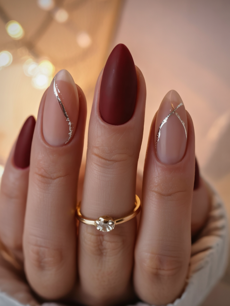 7. Matte Burgundy & Silver Accents for Bridesmaids