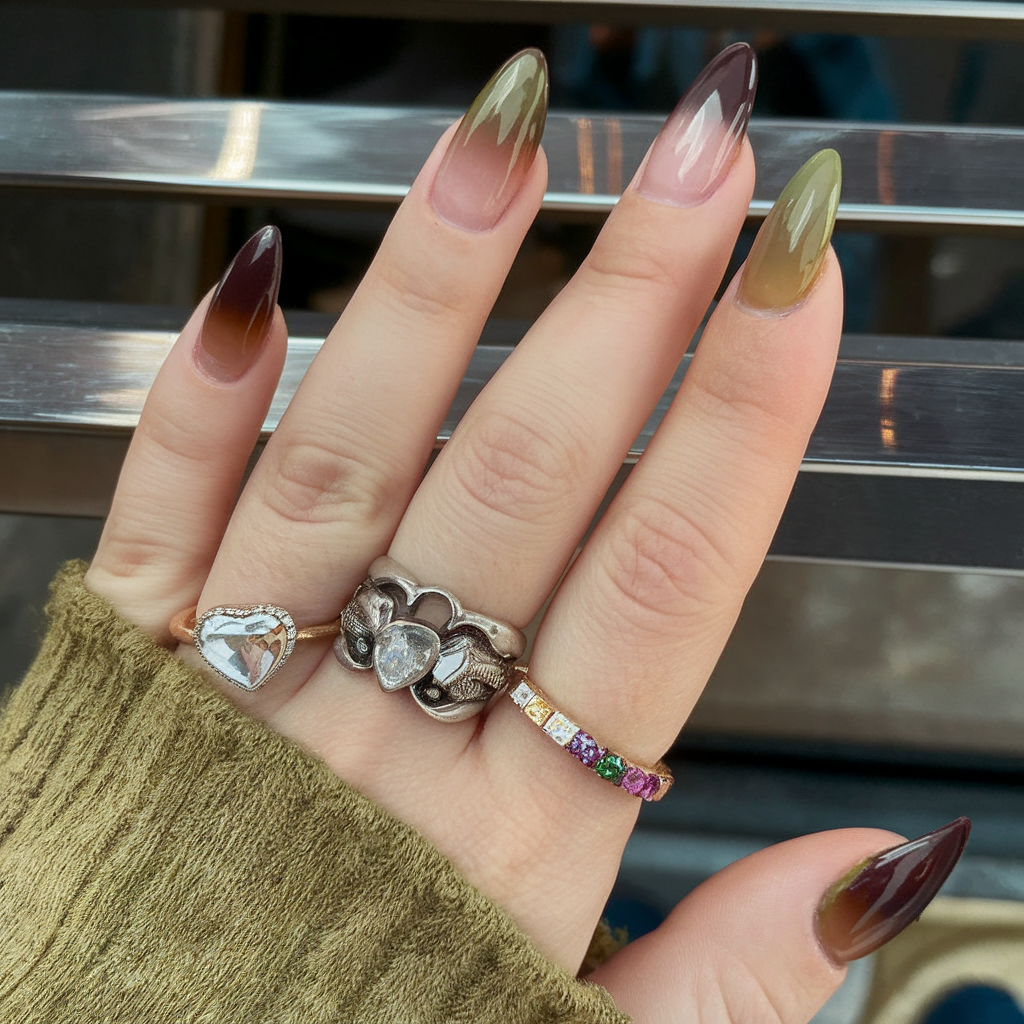 Perfect as longer almond/stiletto, the trend of the year 2025 is all about the tones merging to have a natural gradient. Wear it with layered knits and moody makeup for a full fall moment — it’s subtle, artsy, and utterly mesmerizing.
