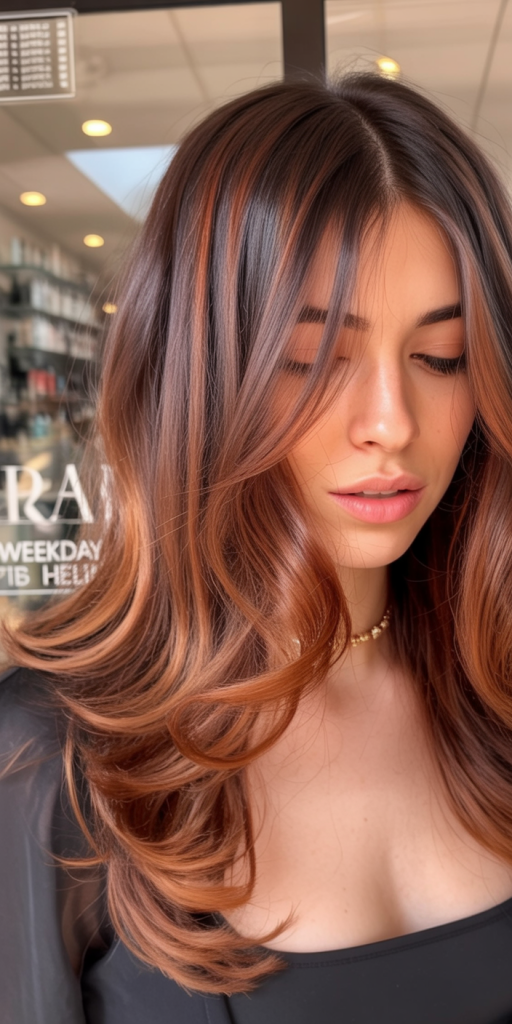 The style is just right when it comes to medium and long hairstyles, and ideally suited to women with in-vogue waves to show of the cinnamon hues. It is complimentary to brunettes in fall 2025, who need to re-energize their locks with warmth without an extreme makeover. It is a very easy color to maintain and seems to be everywhere at the same time; confident but not intimidating.