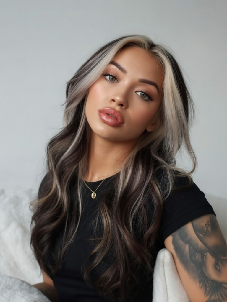 This is an ideal look that would suit brunettes who wish to have a cool edge in terms of the style without having to bleach the hair completely. It is brilliant on medium to longer lengths and particularly on waves because they display the contrast. Low-maintenance grow-wise, it, however, suits brunettes and fall 2025 best who need to add a little drama and make their hair feel playful and fresh once again.