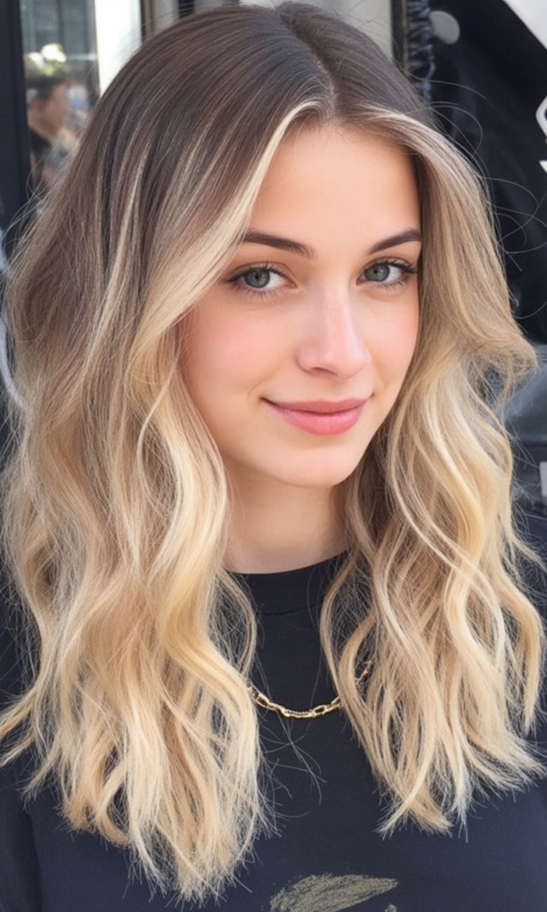 It is an especially flattering look on blondes with medium-length, wavy hair who would still like to stay soft but also dramatic. Midlength darker roots provide contrast highlighting blue or green eyes and light ends will make the hair lively. It’s an easygoing yet trendy choice for 2025.