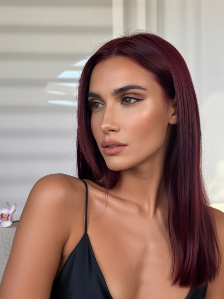 Best suited to those with naturally straight or smooth hair, the shade is highly warming in deeper complexions and has the effect of adding sparkle to brown eyes. The even texture provides easy styling and a silky straight finish giving it a look of pure sophistication. Burgundy is the perfect combination of a trendy color which also feels timeless.