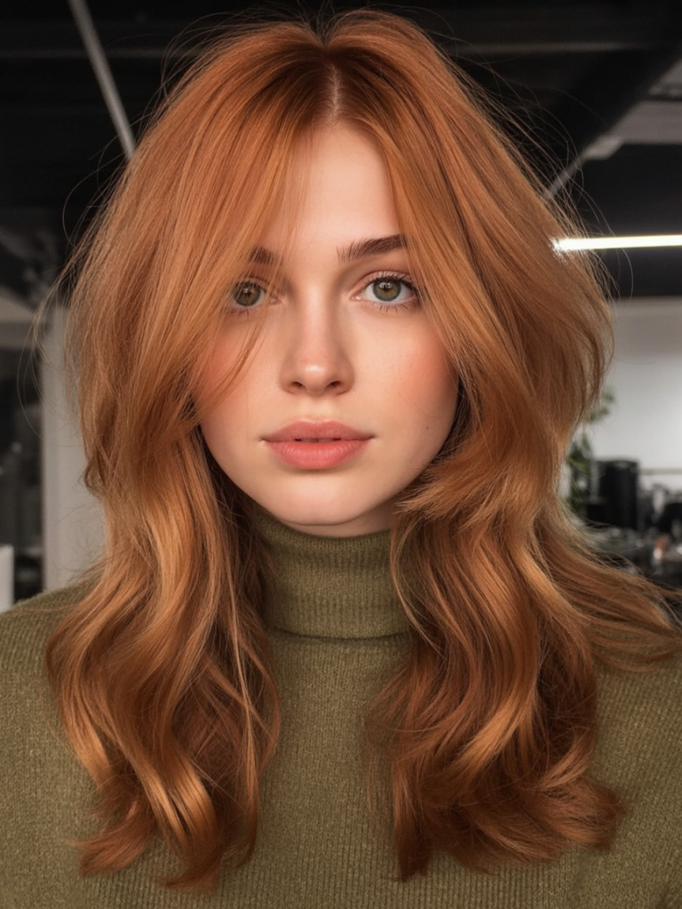 Copper is ideal with fair or neutral skin and it looks delightful with freckles and green eyes. It is a shade that excels in 2025, strikingly noticeable but at the same time elegant. Whether worn in soft waves to enhance the light reflecting quality of the shade or straightened to create a bold, chic effect the fashion is beautiful.