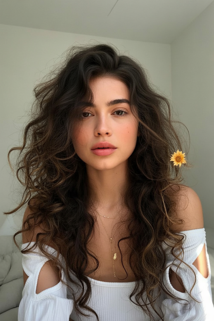 Suited to long, naturally-curly or chemically-permed hair and best when left with only a bit of brushing, this type of style will last through the hours between touch-ups. It goes so well on the wedding guests, birthday parties, or any other event when one wants to flaunt with one hair. Pair with statement earrings to balance the volume.