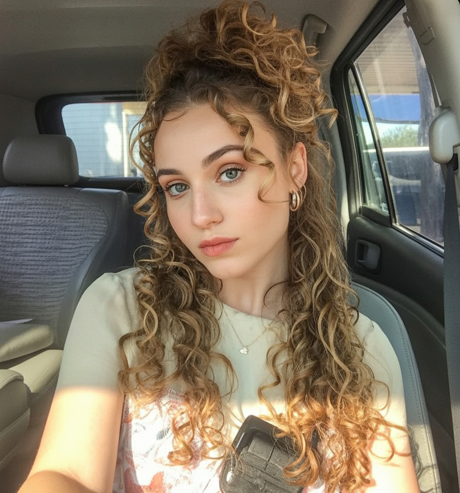Golden curly half-up is flirty, yet sophisticated, and the ringlets, which flip in the air, are very pretty. The half drawback of the top half creates height and impediment and manages to retain a light and young feel.