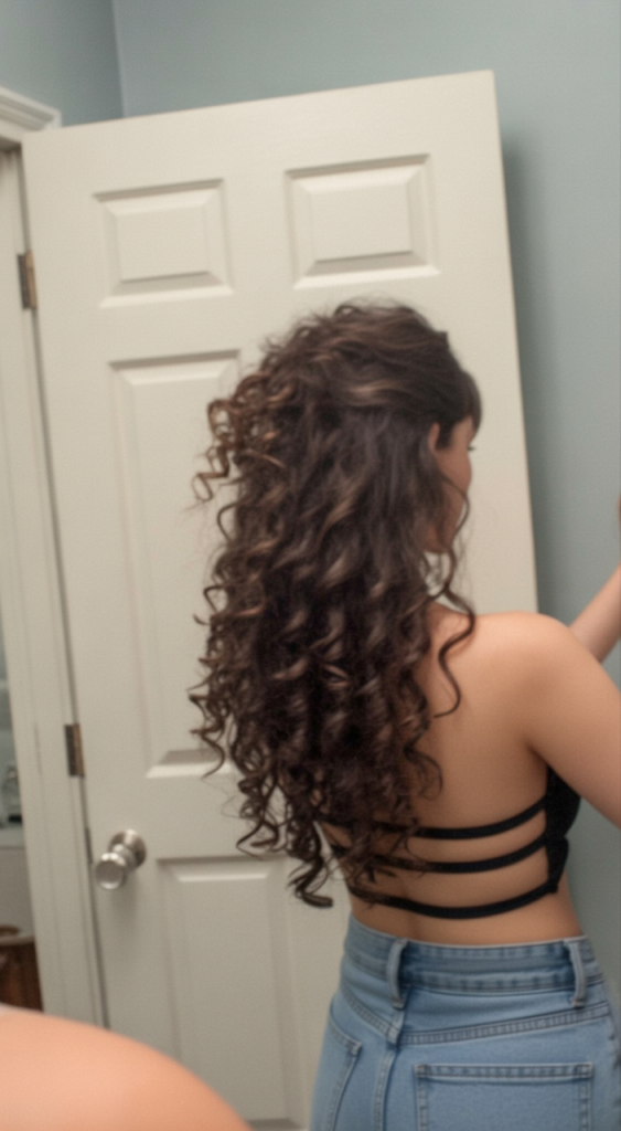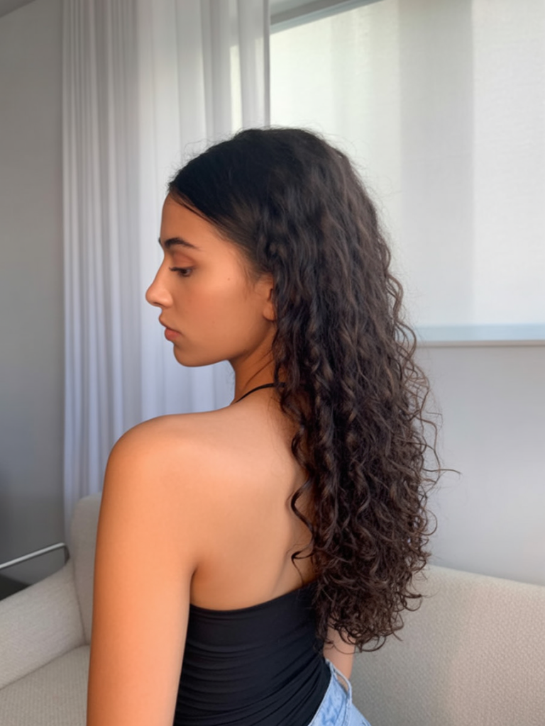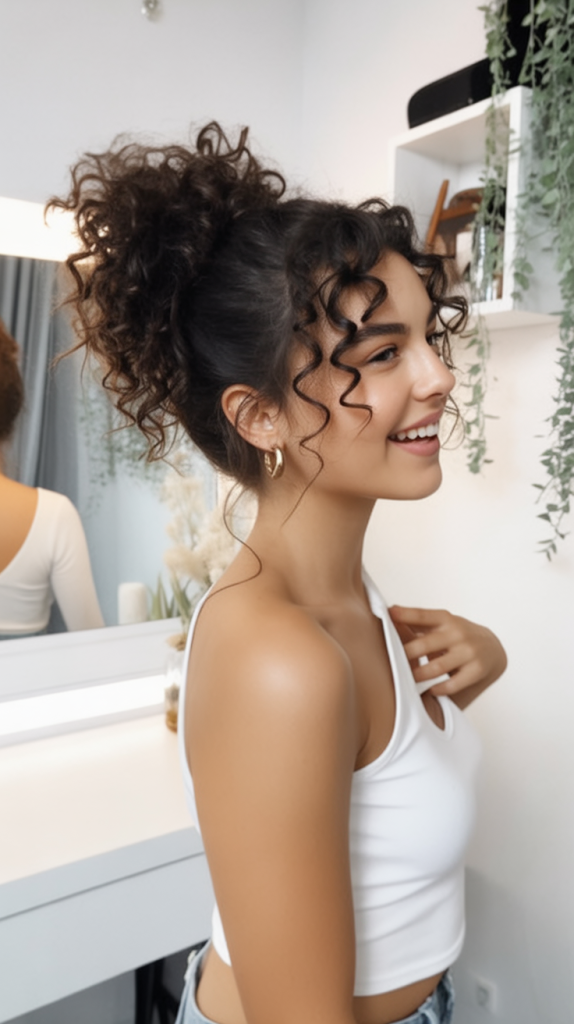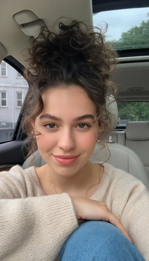 It works best with naturally curly or wavy hair since it glorifies natural texture without the use of heat styling. All you have to do is twist an up top into a loose bun and fix it together with a claw clip or pins and have the rest fall over. It’s low-maintenance, protective overnight friendly, and keeps curls defined.