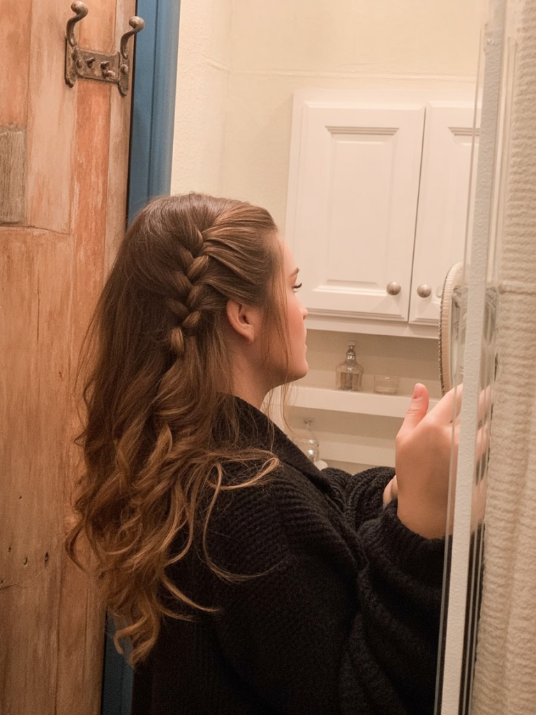 Wavy hair with ribbon braided waves also has a spark of youth and even playfulness. The mini phony-wig braids held together by satin ribbons create a feminine touch to look playfully and vintage-precision to a whole new level. It is sweet without being too gussy, ideal when out and about doing something fun.