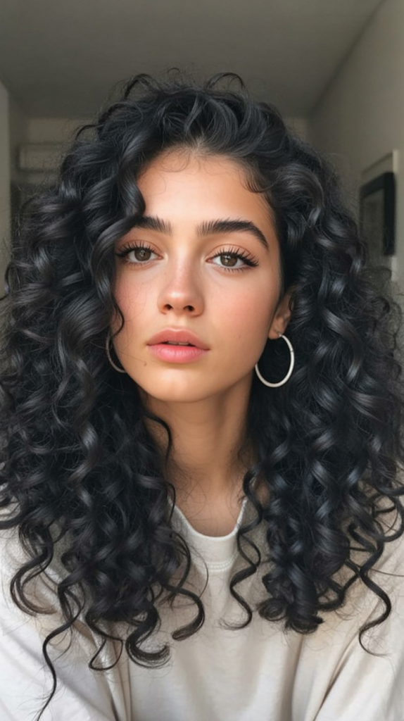 Sleek, defined natural curls exude understated elegance. The sleek crown fades into regular waves which would seem healthy and lively. It is both new and classic, so this style is a great choice when a woman wants to be natural with no straighteners.