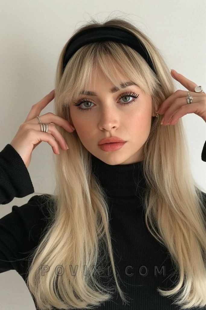 Perfect for both casual and dressy occasions, this style pairs beautifully with a turtleneck or structured top. The headband keeps bangs in place while letting soft strands frame the face. It’s elegant, simple, and endlessly versatile—ideal for everyday glamour.